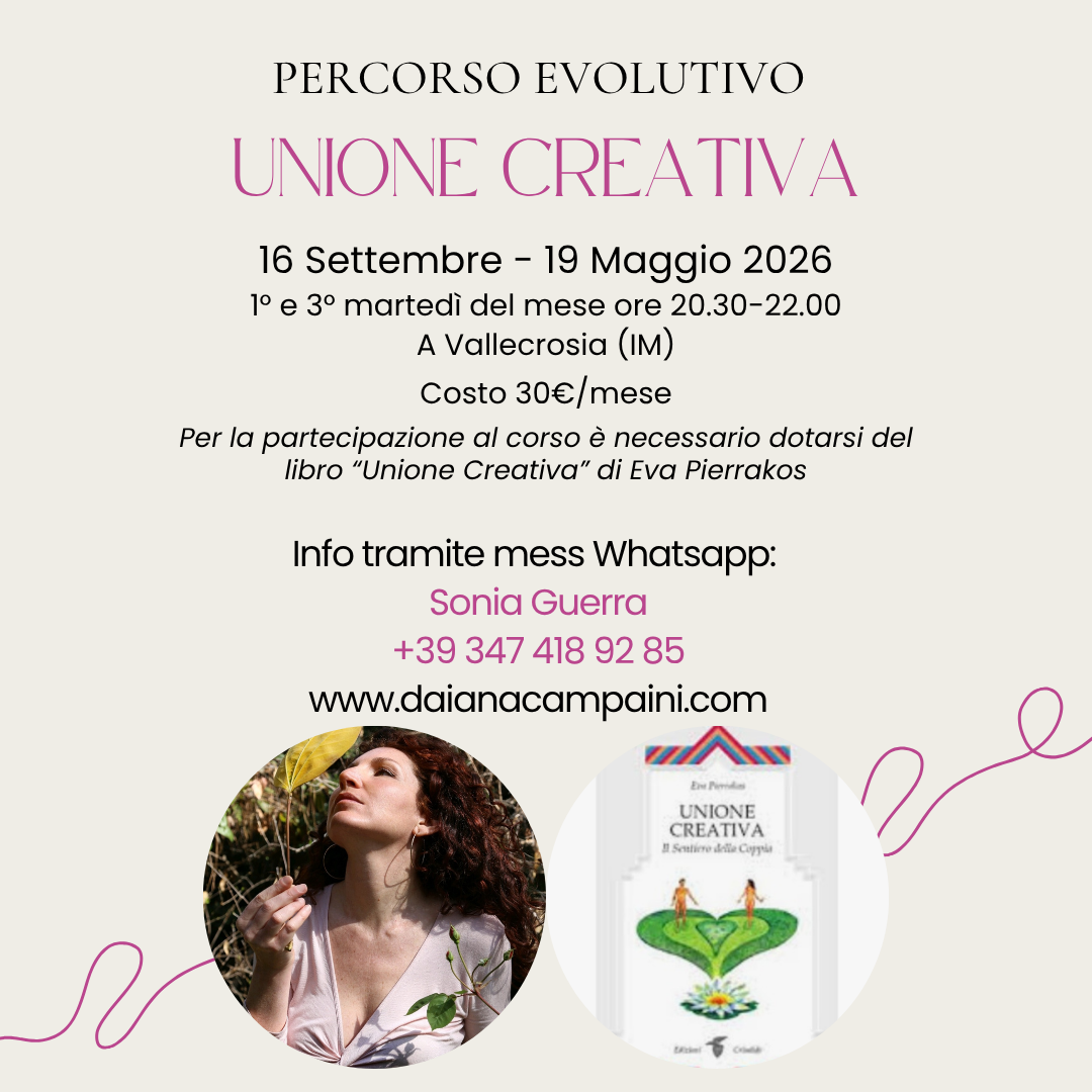 Faremo tutto questo con l’aiuto di un testo meraviglioso: “Unione Creativa” di Eva Pierrakos.
